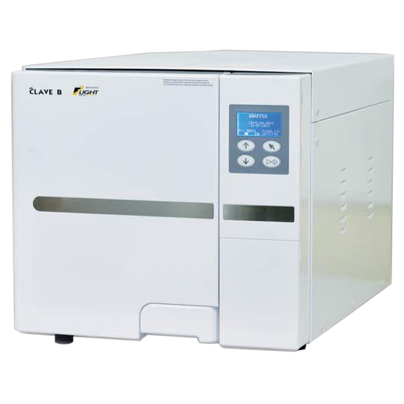 Class B Steam Sterilizer uses the same great technology as other two CLAVE products ( Clave16+ and Clave 23+). Featuring an independent steam generator which ensures quick sterilization cycles, LCD display with clear and easy to use interface, stainless steel chamber and a double locking mechanism that provides added safety to prevent the door from opening when in use or if pressurized.