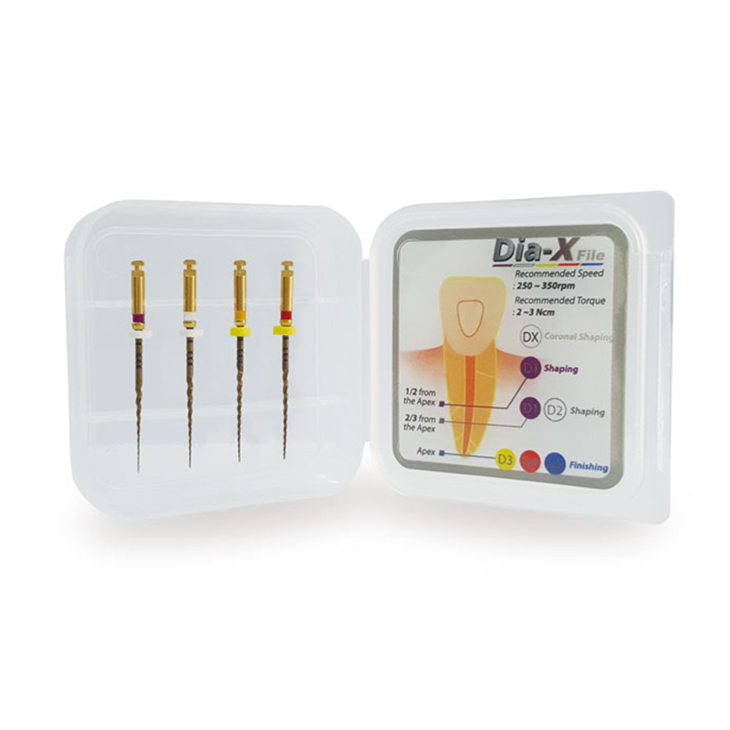 Dia-X Rotary Files are comparable to the popular rotary file system in the market today. It provides 143%+ the resistance to cyclic fatigue than Dia-PT Rotary Files.
