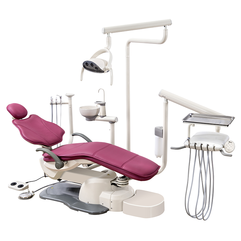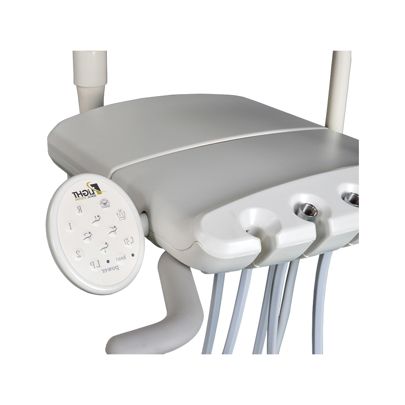 The delivery system is mounted to the base of the chair allowing both left handed and right handed dentistry to be performed on it using an ambidextrous swing arm for both the light and delivery system.