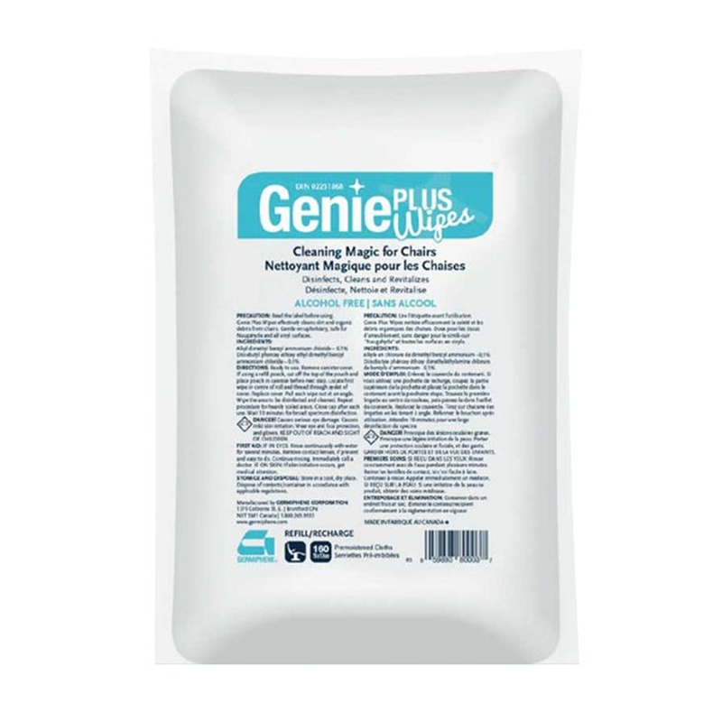 Genie Plus Wipes, Chair disinf.cleaner towelettes, Refill, 15cm x17cm