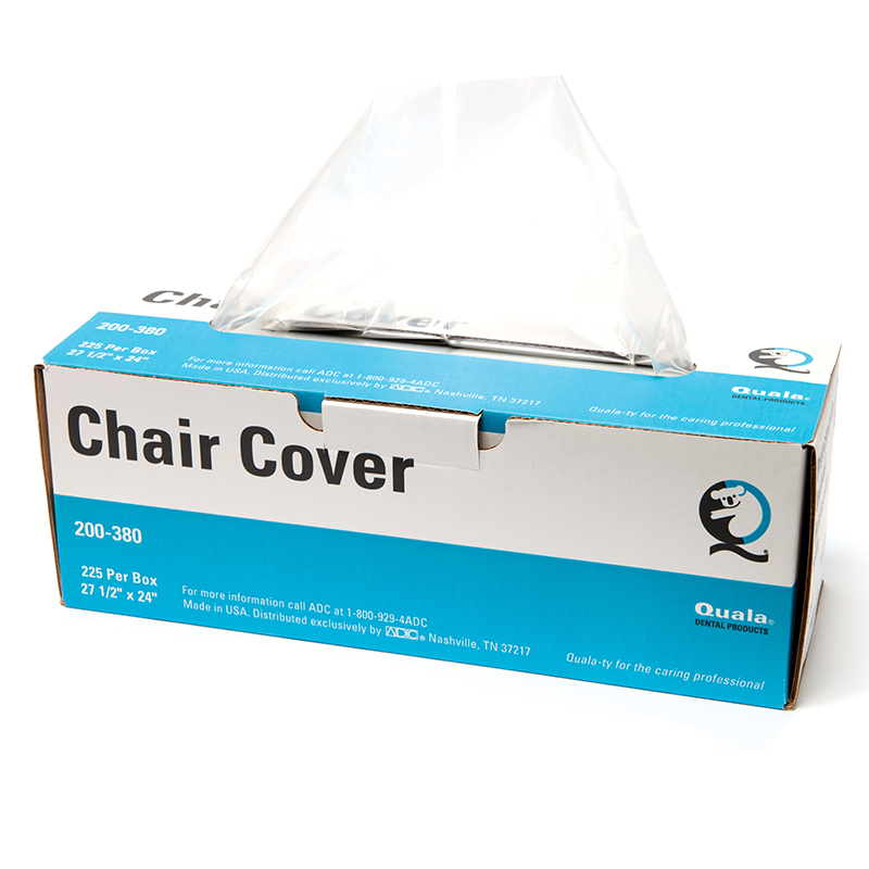 Disposable plastic sleeve is tapered to cover front and back of dental chair. Inner layer clings to chair, helping it stay in place. Smooth outer surface allows patients to move comfortably.