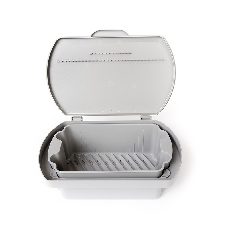 - Calendar on lid conveniently reminds staff when to change the solution: use color code rings to mark dates